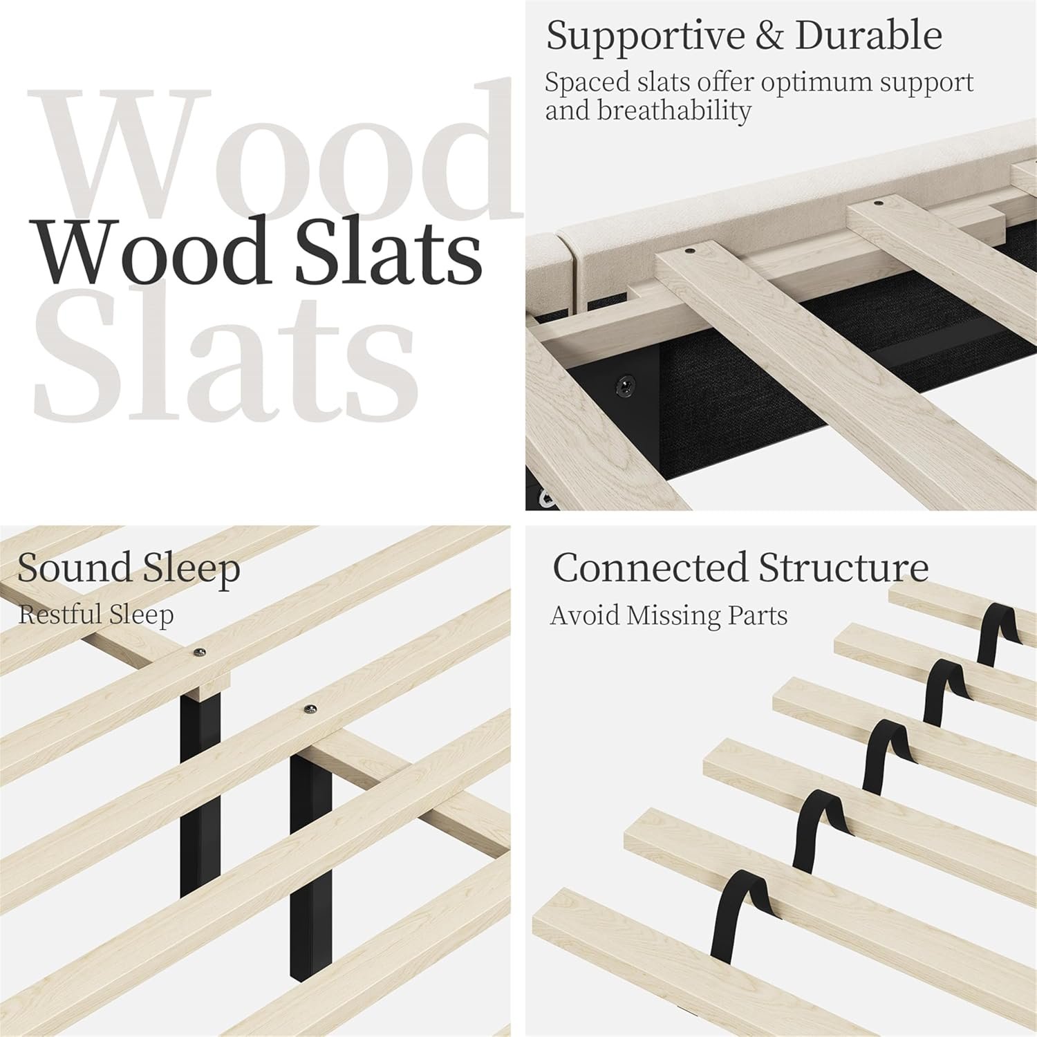 Sturdy Wood Construction: Interior solid wood framework and robust support feet, 12 pieces of durable wooden slats, and a dense foam-padding border increase the comfort and durability of this queen bed frame with wing design. With a maximum weight capacity of 800 lbs
